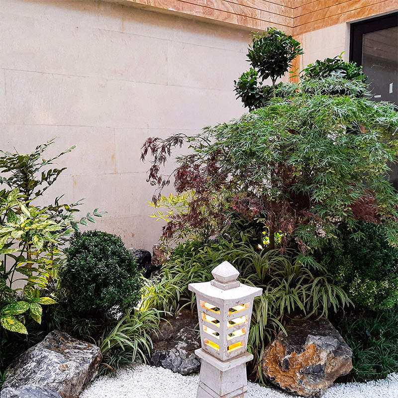 از گیاهان مقاوم به سایه مثل زامیفولیا، سانسوریا و فیلودندرون استفاده میکنیم و در صورت نیاز نور مصنوعی مخصوص رشد گیاه نصب میکنیم تا گیاهان سالم بمانند.