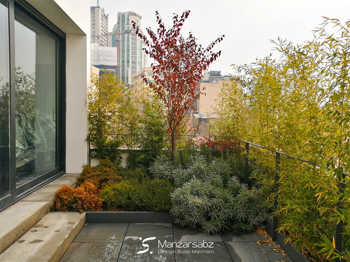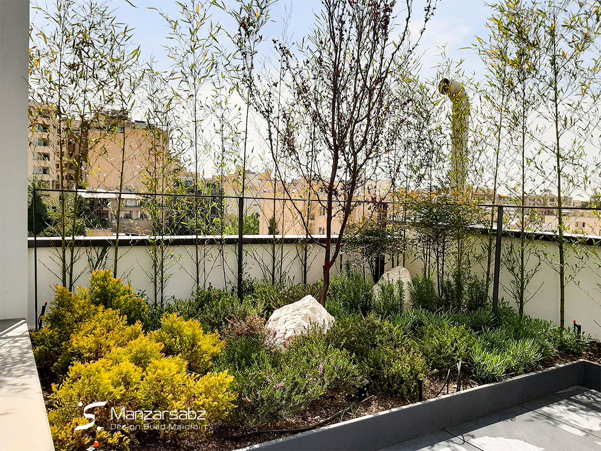 این اجرای بام سبز در پشت بام یک ساختمان اداری جهت استفاده کارکنان از سالن غذاخوری و اتاق ورزش توسط تیم شرکت باغ ایرانی احداث شده است. به منظور اجرای فضای سبز نیمه گسترده این پروژه، با توجه به کف کاذب اجرا شده، ابتدا تمامی قسمت های سبز با فلاورباکس های فلزی و رنگ اپوکسی اجرا و سپس لایه بندی های روف گاردن ، خاکریزی و کاشت پوشش گیاهی انجام شد. در طراحی کاشت این پروژه سعی شد که با توجه به کاربری هر فضا و با استفاده از گونه های گیاهی متنوع، فضای بسیار زیبایی به عنوان چشم انداز برای استفاده کنندگان خلق شود.