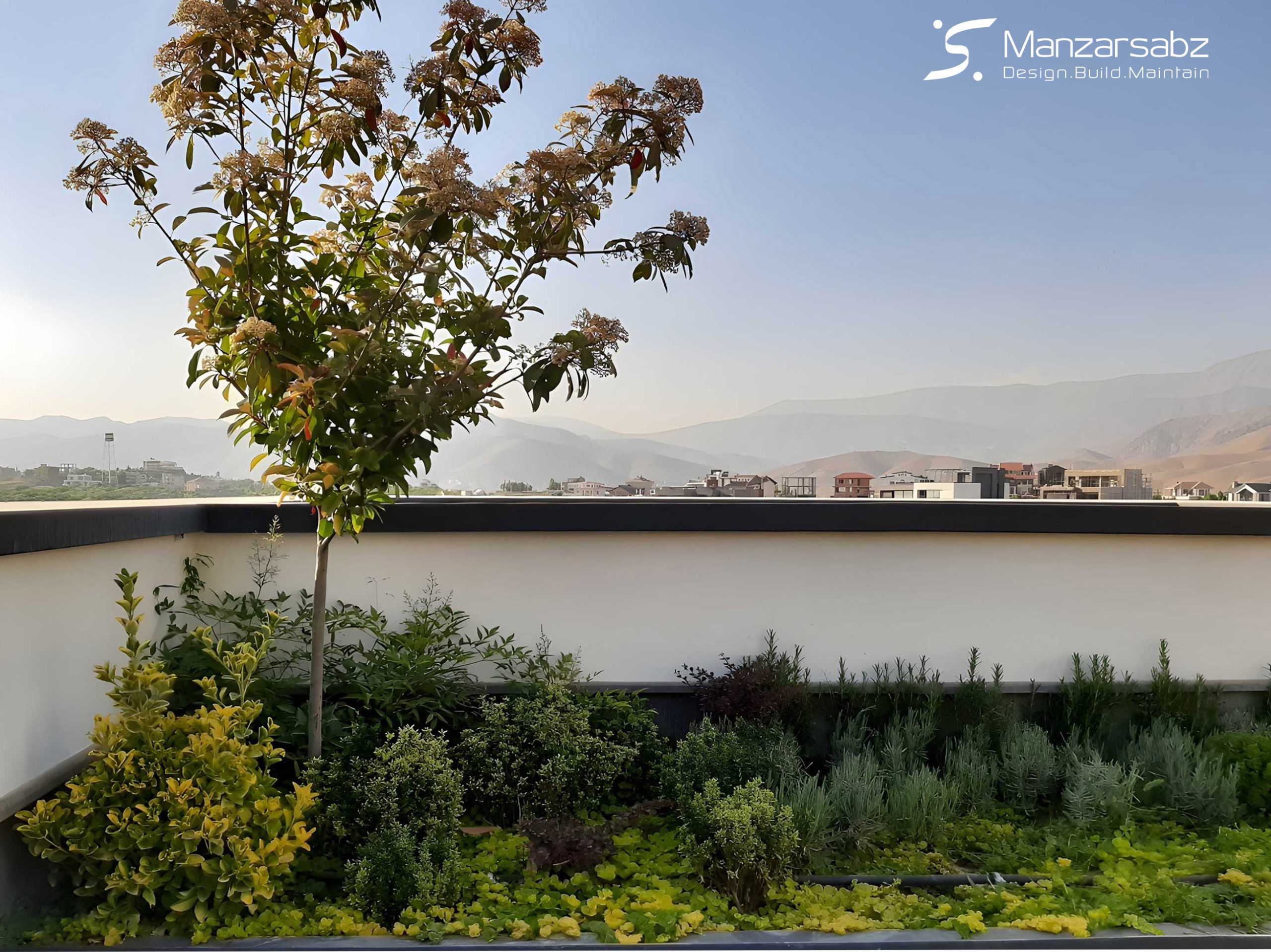 اشتباه در ترتیب و اجرای لایه های روف گاردن در این پروژه، باعث شد که تیم منظرسبز تمام خاکریزی و لایه های اجرا شده قبلی را از باکس های اجرا شده در بام، خارج و مجدد تامین و نصب نماید. در طراحی کاشت روف گاردن دماوند سعی شد که از گونه های گیاهی مقاوم به سرما استفاده شود و همچنین از گیاه لاوان به عنوان پیش زمینه کاشت تمامی باکس های روف استفاده شود. رنگبندی و تغییر رنگ گیاهان در فصول مختلف سال از دیگر ویژگی های طراحی کاشت این پروژه محسوب می شود.
