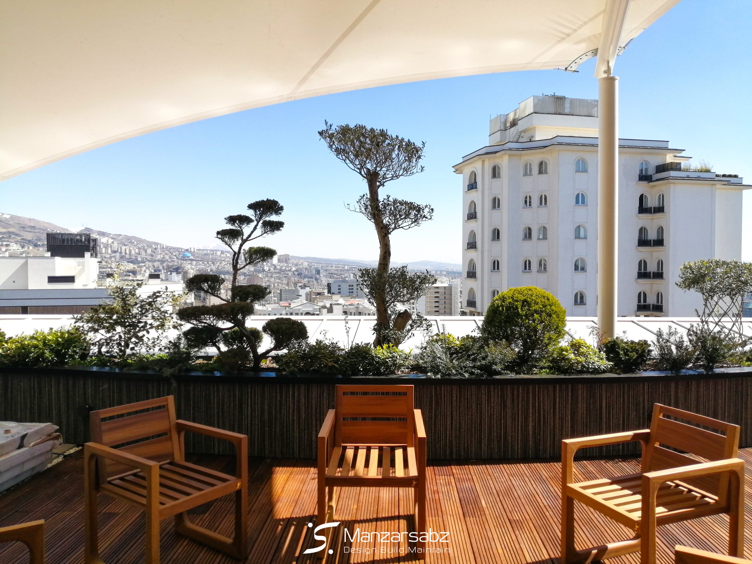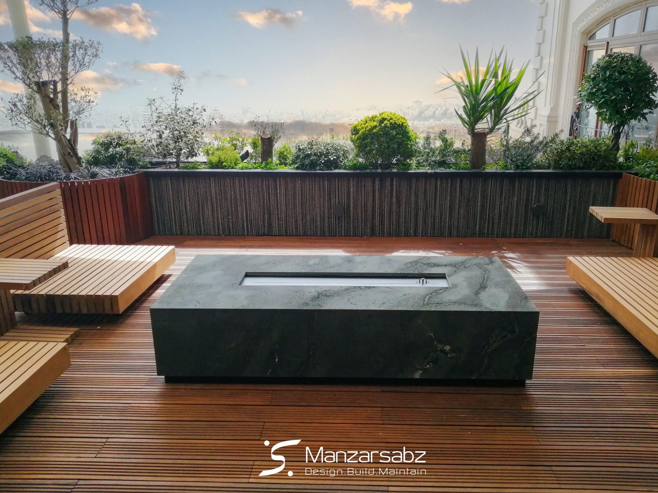 نیازهای کارفرما از فضا چند نشیمن متنوع در بالکن و آتشدان (فایرپلیس)، آبنما و همچنین سیستم آبیاری اتوماتیک به همراه تنوع گونه گیاهی خاص بود، که تیم منظر سبز با نهایت دقت این پروژه را با توجه به نیازها با موفقیت به سرانجام رساند.