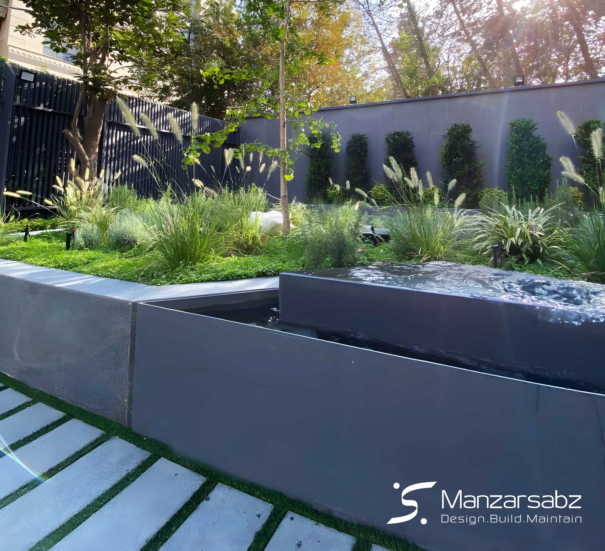 آبنمای چند پله طبق طرح کارفرما با دتیل پمپ آب مخفی