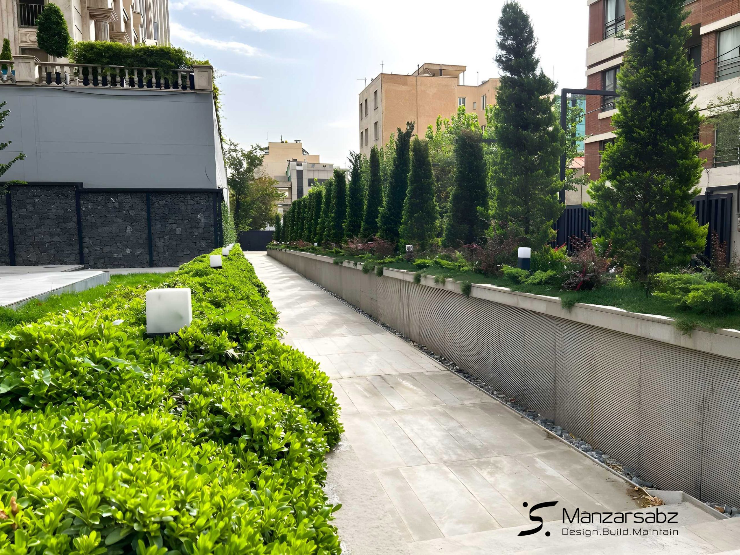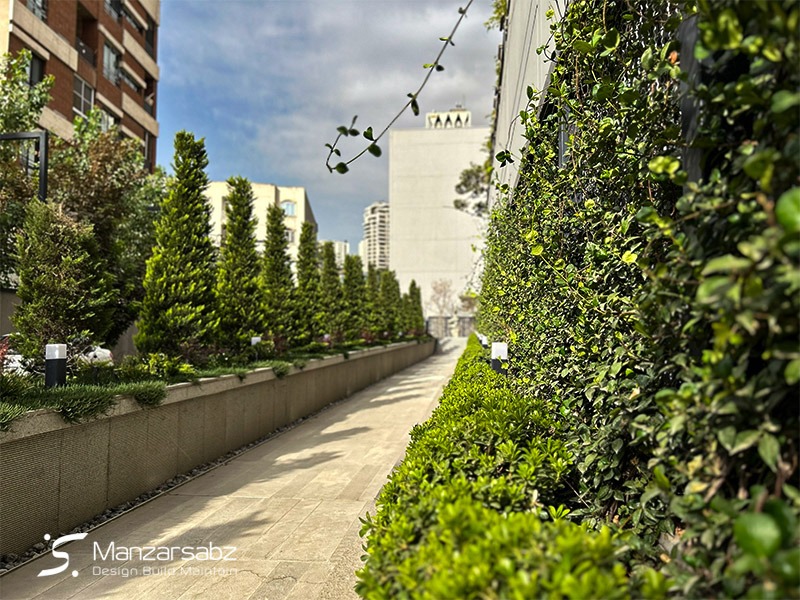 پروژه شریعتی یک محوطه سبز به مساحت ۱۵۰۰ متر مربع در دل فضای شهری تهران است که از هم نشینی زیبا و معنی دار گیاهان و آب در کنار سطوح سنگی و نمای مدرن شکل گرفته است، به گونه ای که به نظر می رسد نما و گیاهان به یک هارمونی مدرن رسیده اند که سبک مورد نظر طراح را دنبال میکند.
