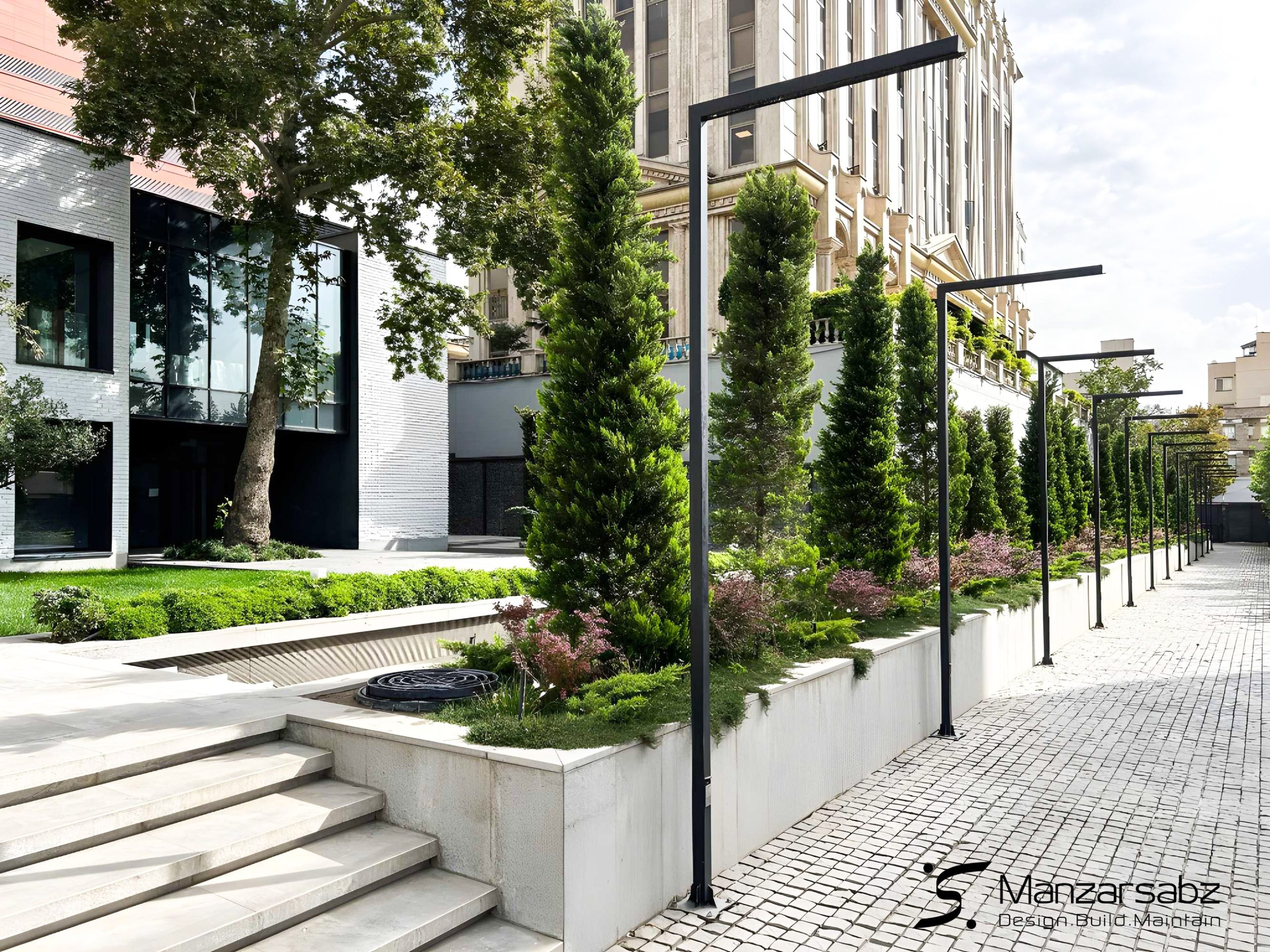 در طراحی کاشت پروژه شریعتی سعی کردیم علاوه بر وفاداریمون به طرح و ایده معماری، از لحاظ ارتفاعی و بصری منظره را برای کاربر هم از داخل به محوطه و هم بالعکس قاب کنیم. همچنین با وجود تنوع رنگ و بافت، نظم و توالی که لازمهی طرح و محیط های اداری هست رو در کاشت باغچه ها رعایت کنیم.