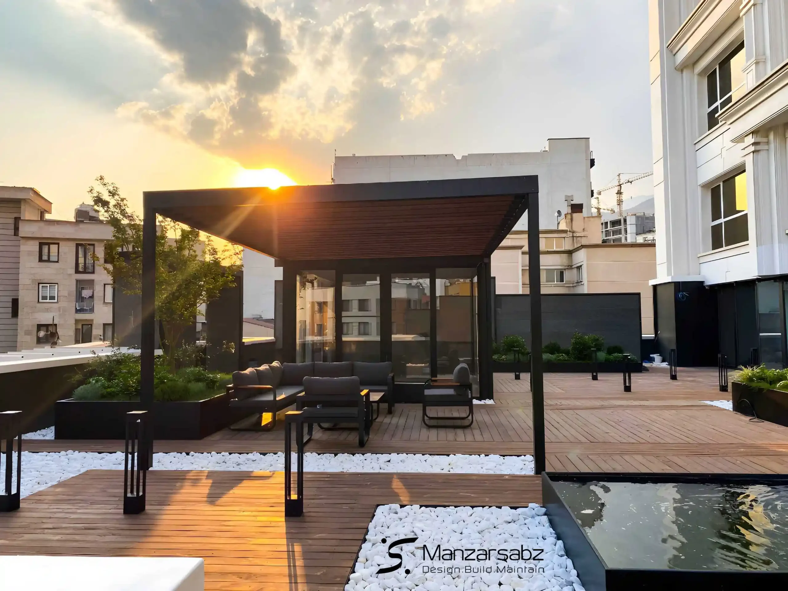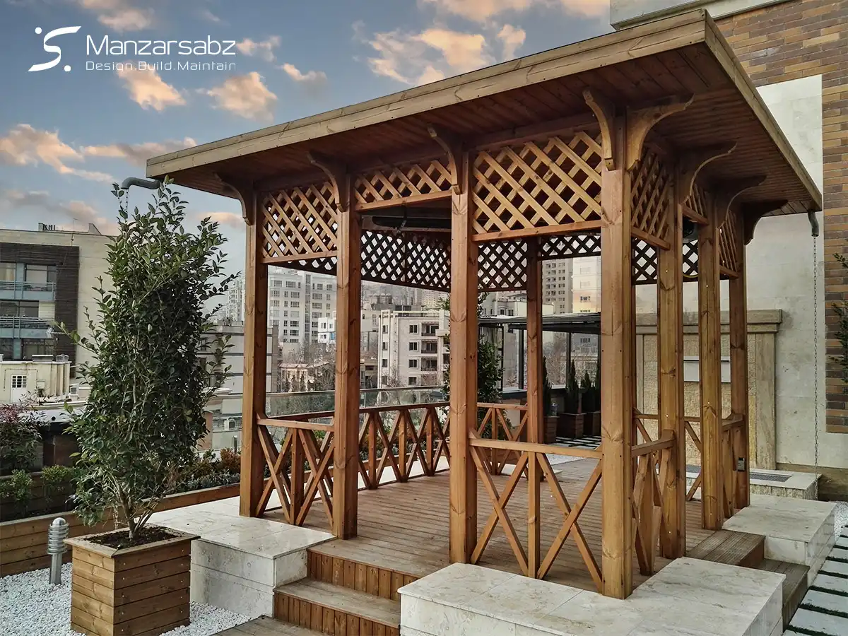 مزیت اصلی انتخاب سبک مدرن، قابلیت انطباق آن با طیف وسیعی از متریال ها و سلیقه هاست. این آلاچیق ها با حذف تزئینات اضافی و تمرکز بر فرم هندسی خالص، جلوه ای شیک، لوکس و آرامش بخش ایجاد می کنند. تیم منظر سبز با تخصص در اجرای بام سبز و انواع پروژه های محوطه سازی، طراحی و ساخت آلاچیق مدرن شما را با بالاترین استانداردهای مهندسی و زیبایی شناسی تضمین می کند. ما این سازه ها را نه تنها به عنوان یک پناهگاه، بلکه به عنوان یک المان بصری کلیدی برای تکمیل منظره بیرونی شما می بینیم.